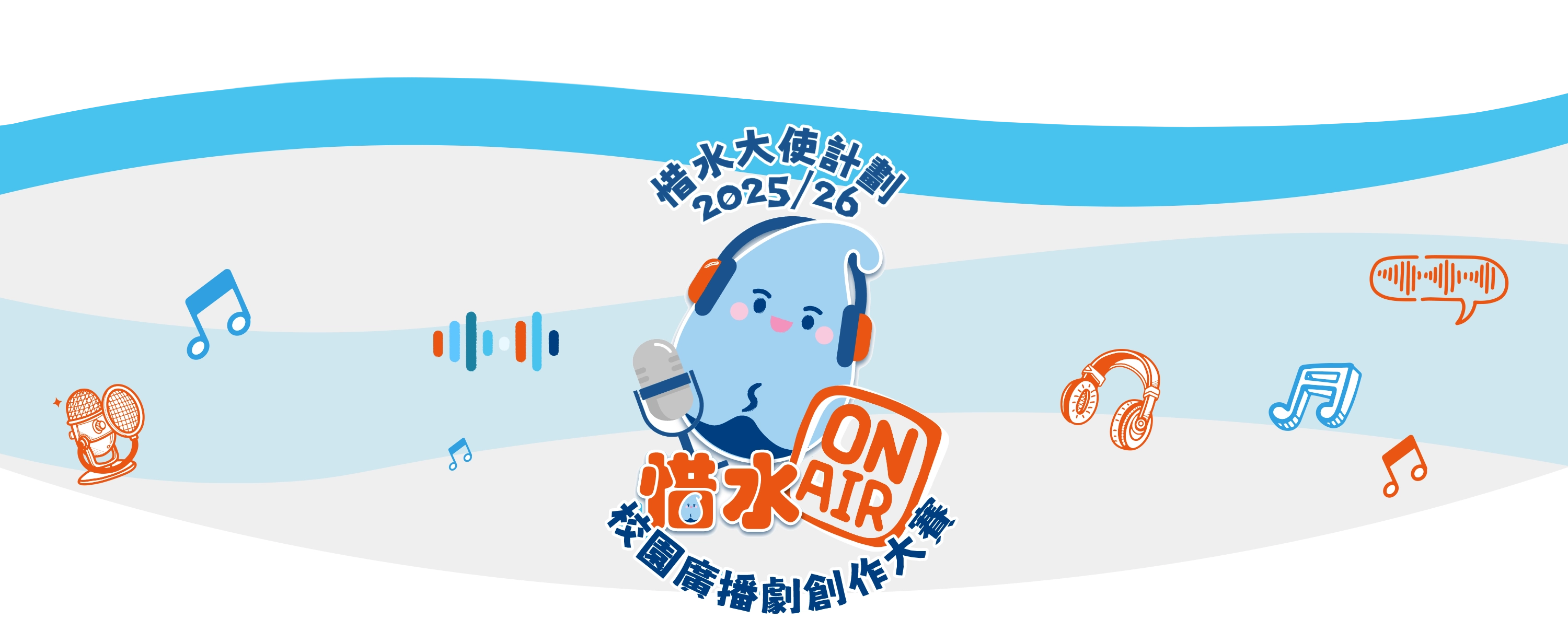 由水務署主辦、香港電台全力支持的「惜水大使計劃2025/26──惜水On Air 校園廣播劇創作大賽」現正展開,誠邀全港中學生化身「惜水大使」,發揮創意思維,以「節約用水」為主題,結合滴惜仔的惜水主題曲《點滴也是愛》為靈感,創作並錄製廣播劇,向公眾推廣節約用水的信息,協助社區建立可持續發展的用水文化,共同創造不缺水的未來。